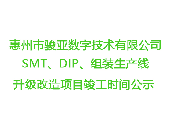 惠州市駿亞數(shù)字技術(shù)有限公司SMT、DIP、組裝生產(chǎn)線(xiàn)升級(jí)改造項(xiàng)目竣工時(shí)間公示